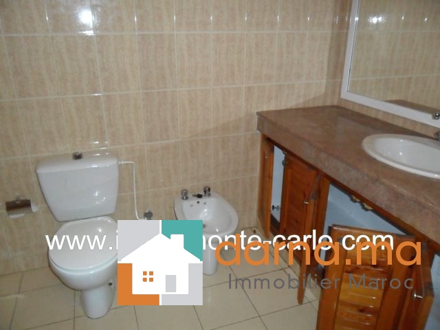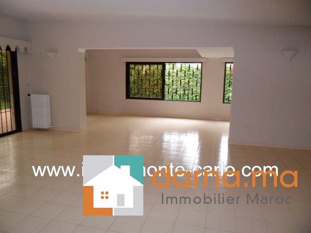 Agréable villa plain pied au calme avec piscine et double types de chauffages (chauffage central et électrique) et très beau jardin avec puits, garage, chambre de gardien avec douche, située au quartier résidentiel de Souissi proche de toute commodités et composée de double salons et un coin cheminée, un séjour, WC pour les invités, Hall, grande terrasse, une chambre parental avec dressing et salle de bain, un bureau, 4chambres avec salles de bain, une cuisine équipée et buanderie. Pour plus d’informations n’hésitez pas de contacter notre agence immobilière Immo Monte-Carlo au N° de tél: +212661464037 /+212661212547 ou Tél / Fax:+212537755043 ou par E-mail : Cette adresse e-mail est protégée contre les robots spammeurs. Vous devez activer le JavaScript pour la visualiser. ou visitez notre site www.immomonte-carlo.com ou rendez-vous au 15, Av. Al Abtal N°4 , Agdal RABAT MAROC.