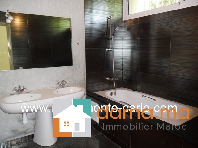 Location villa plain pied au quartier Souissi Rabat, construite sur un terrain de 2000m², Villa propre en bon état et ensoleillée, composée de double salon, cheminée, WC des invités, séjour, terrasse, chambre parental avec dressing et salle de bain et 2chambres avec deux  salles de bain, cuisine, buanderie logement de personnel, jardin entretenu avec puits, garage…. Pour plus d’informations n’hésitez pas de contacter notre agence immobilière Immo Monte-Carlo au N° de tél: +212661464037 /+212661212547 ou Tél / Fax:+212537755043 ou  par E-mail : Cette adresse e-mail est protégée contre les robots spammeurs. Vous devez activer le JavaScript pour la visualiser. ou visitez notre site www.immomonte-carlo.com ou rendez-vous au 15, Av. Abtal N°4,  Agdal RABAT MAROC.