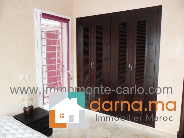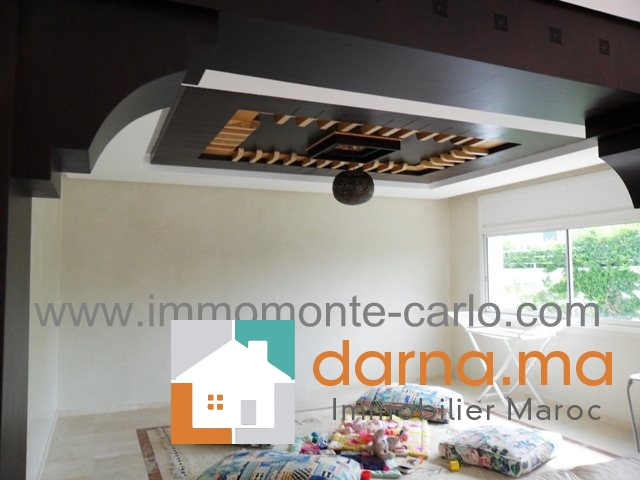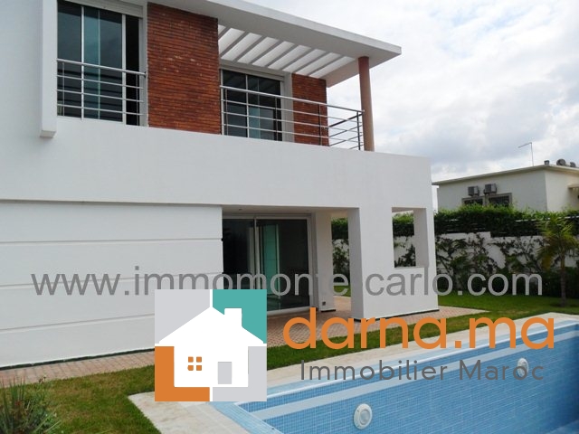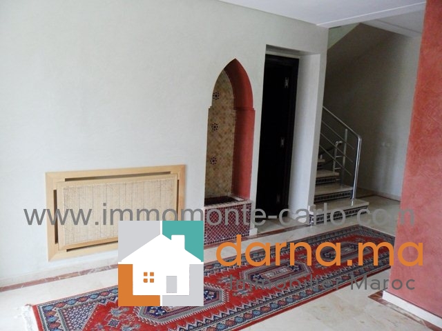salons avec un coin cheminée, salle à manger, une grande chambre, 2 WC, une cuisine Location villa neuf avec chauffage central  et piscine sur la route de Zaers à Rabat, entourée d’un joli jardin avec piscine,   construite sur trois niveaux comprenant chambre parental avec SDB et dressing,  2 chambres à coucher avec placards, salle de bain, terrasse et balcon, , box garage et logement de gardien…Pour plus d’informations ou visite n’hésitez pas de contacter notre agence immobilière Immo Monte-Carlo au N° de tél: +212661464037/ +212661212547ou Tél/Fax: +212537755043 ou par E-mail : Cette adresse e-mail est protégée contre les robots spammeurs. Vous devez activer le JavaScript pour la visualiser. ou visitez notre site www.immomonte-carlo.com ou  rendez-vous au 15. Av, Al Abtal N°4, Agdal Rabat .