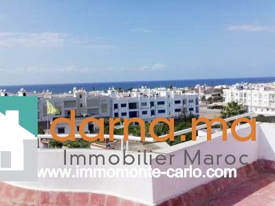 A louer appartement avec terrasse vue sur mer Rabat Harhoura bien meublé et équipé, situé dans une résidencesécurisée bien ensoleillée avec jardin et garage, à 500 mètres de la plage, 2 façades avec balcon comportant une cuisine équipée avec buanderie, salon, chambre parental, chambre enfant, salle d’eau, salle de bain, Pour plus d’informations ou visite n’hésitez pas de contacter notre agence immobilière Immo Monte-Carlo au N° de tél: +212661464037/ +212661212547ou Tél/Fax: +212537755043 ou par E-mail : Cette adresse e-mail est protégée contre les robots spammeurs. Vous devez activer le JavaScript pour la visualiser. ou visitez notre site www.immomonte-carlo.com ou  rendez-vous au 15. Av, Al Abtal N°4,  Agdal RABAT MAROC.