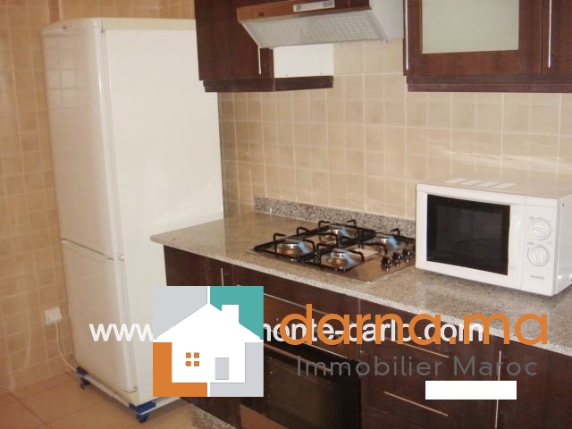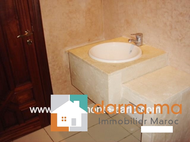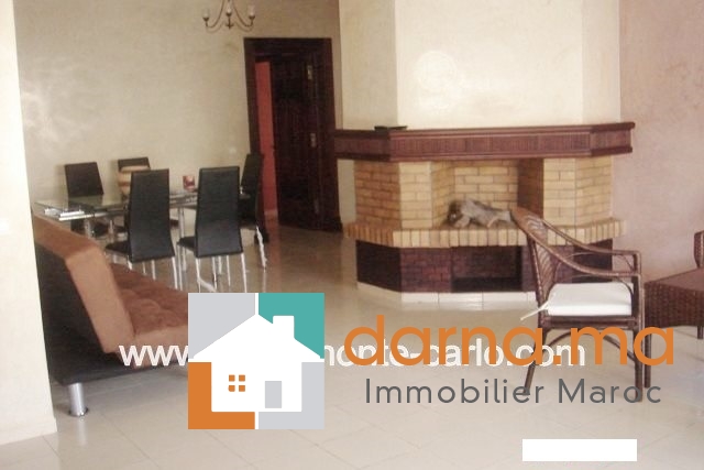Location appartement meublé avec terrasse à Rabat à Bassatine Al Manzeh, 2Façades (Un balcon par façade) chauffage et climatisation dans toutes les pièces, sans vis-à-vis, immeuble avec ascenseur dans une résidence fermée avec jardin, sécurisée 24/24, dans un endroit calme et proche de toutes commodités, composé de 2 salons avec cheminée, séjour,  salle des invités, terrasse, suite parentale avec dressing, salle de bain et balcon, deux chambres avec salle de bain et balcon, une cuisine équipée, buanderie, débarras, garage.