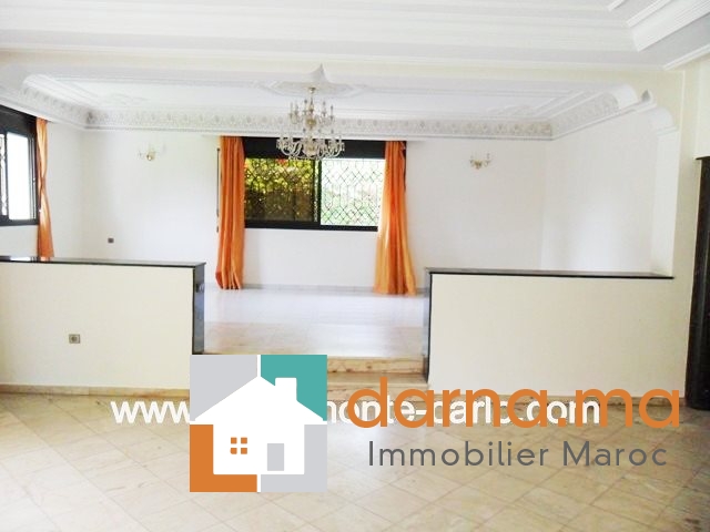 Jolie villa  à louer Hay Riad  Rabat, Secteur paisible et sécuritaire. Villa style Européen avec léger cachet marocain. Très bien agencée. Composé de 2 salons, 3 chambres à coucher, chacune avec sa salle de bain.  Appartement des parents avec  dressing et salle de bain et une douche séparée.